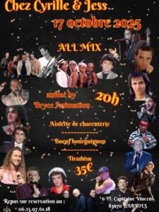 Organisée par le restaurant Chez Cyrille et Jess sur la Place Capitaine Vincens à 20h00 en présence du DJ Bryce.